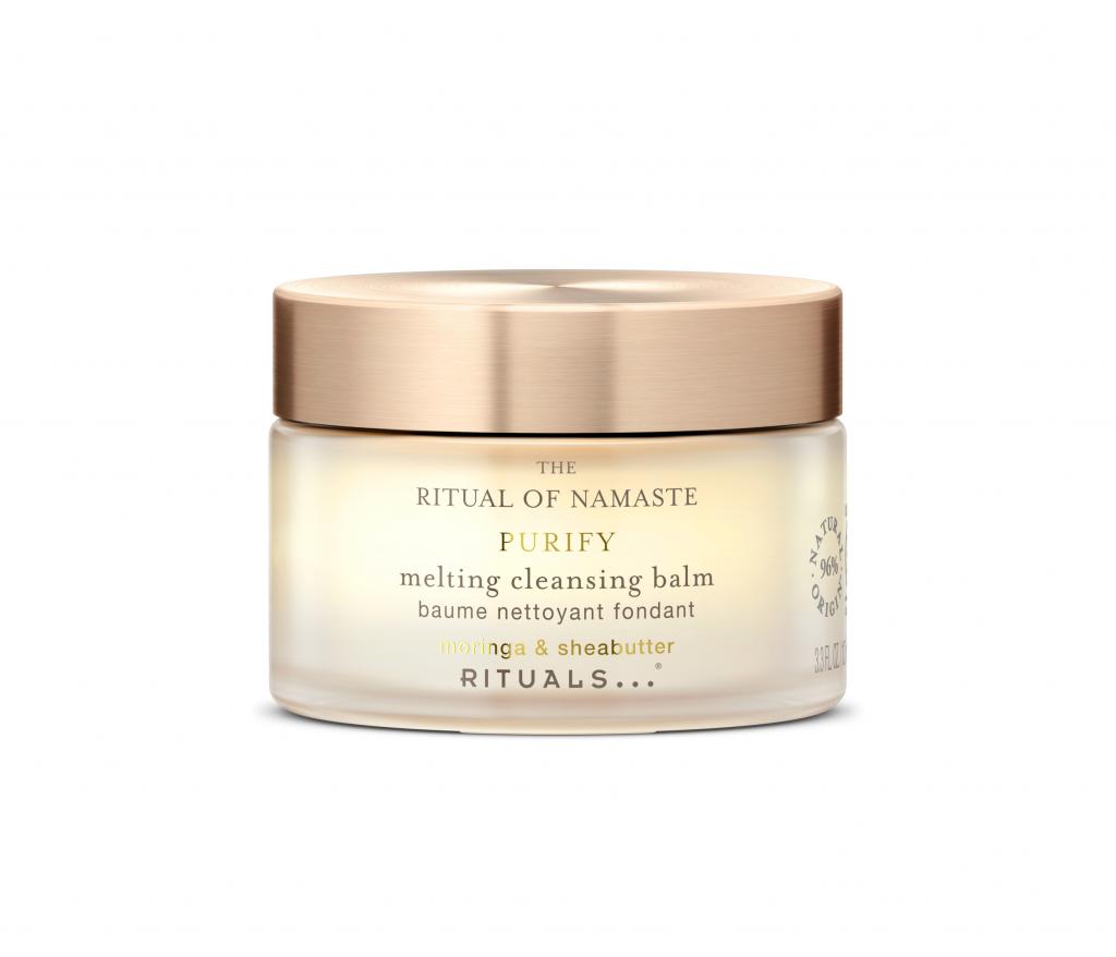 Niets bevredigender dan een smeuïge reinigingsbalsem zien smelten op je huid in een olie die alle make-up en andere onzuiverheden oplost. De ‘Purify Melting Cleansing Balm’ van Rituals (€ 24,90) bevat karitboter en zuiverende moringa – een van de meest voedende planten – en geeft je een propere, zachte en stralende huid.