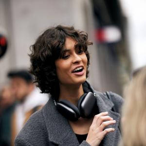 Korter kapsel? Ook dan kun je wel degelijk extra glamour toevoegen voor een trouwfeest. Een van onze favoriete bob-looks van het moment, is die van Sydney Chandler: zij kiest voor een edgy opgeknipte variant met micro bangs.