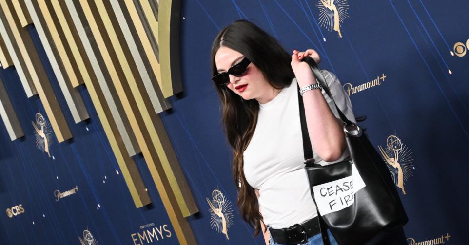Vannacht werden in L.A. de belangrijkste televisieprijzen van het jaar weer uitgereikt. Naast veel moois óp het podium uiteraard ook veel spraakmakende outfits op de rode loper. Eentje die z’n boodschap niet miste, was die van Too Much-actrice Megan Stalter: geen dure couture-jurk of chic mantelpak voor haar, wel een eenvoudige jeans en tas met een missie.