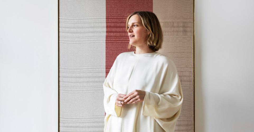 • Is designer op het snijpunt tussen textiel en (interieur)architectuur. Past een mix toe van handmatige en industriële weeftechnieken, waarmee ze poëtische stuks creëert – van paravents en room dividers over gordijnen tot tapijten.