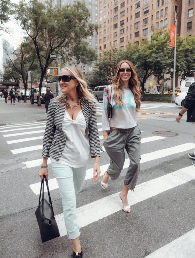 Toch blijkt haar persoonlijke stijl ver verwijderd van die van Carrie. “Ik ben niet zo moedig,” geeft ze toe. Waar Carrie extravagantie en risico’s omarmt, kiest Parker eerder voor eenvoud. Zelfs haar handtas blijft sober, en zal nooit een Labubu kennen. “Niet omdat ik me beter voel dan de rest” lacht ze, “ik hou er gewoon niet van om extra dingen aan mijn tas te hangen.”