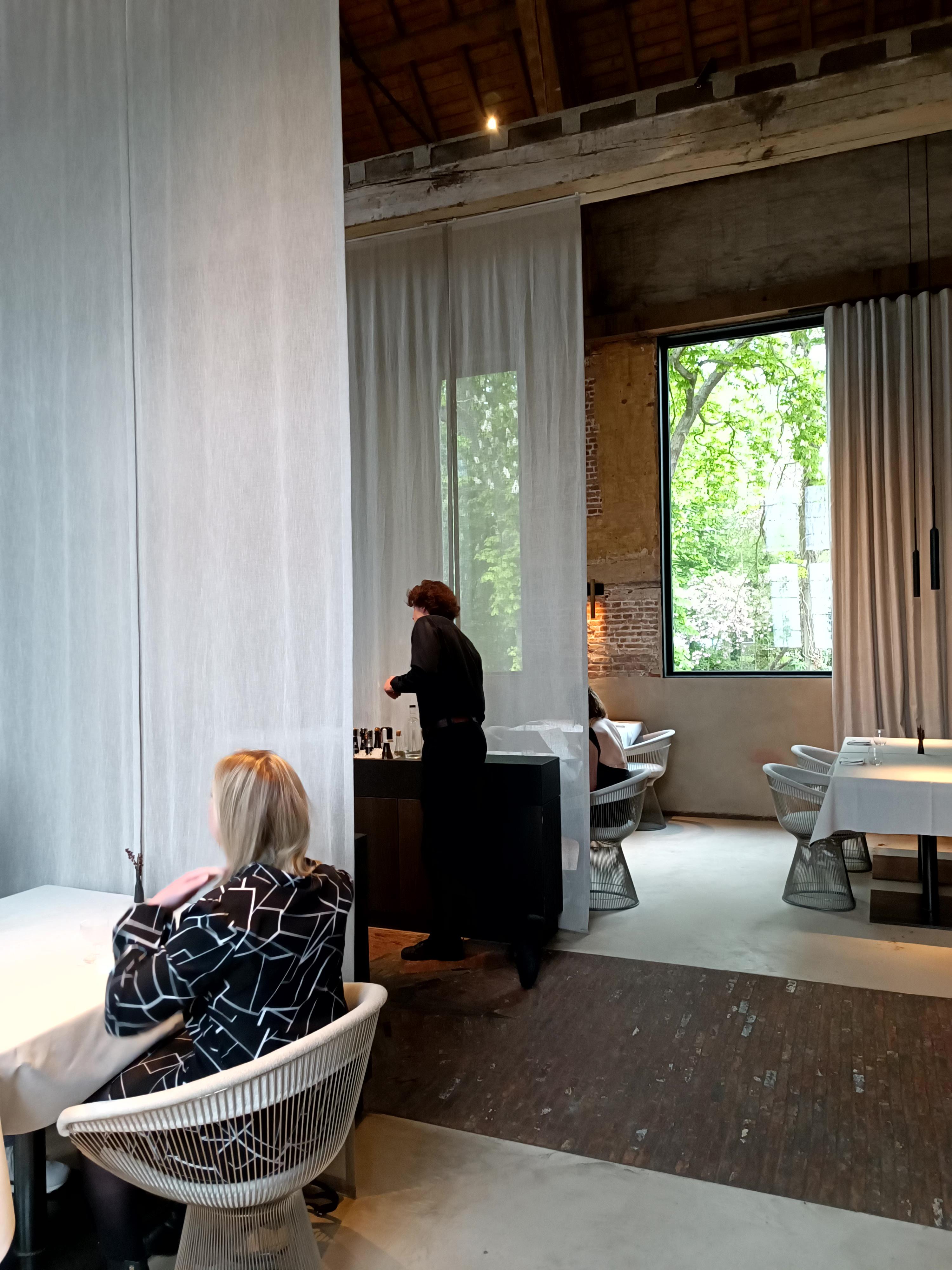 Restaurant Stable kreeg van Gault Millau een schouderklop voor de eigentijdse inrichting. Het vroegere koetshuis van kasteel Hof ter Linden in Edegem is inderdaad een prachtsetting met muren van blote baksteen, semi-transparante linnen panden als kamerscheiding en een zwarte bar. Een spel van donker en licht. Dat het diner 105 euro kost, nemen we er graag bij, want de zes gangen zijn origineel en perfect bereid door chef Tom Loockx, zoals de mossel met saffraan en bloedworst. Bij de wijnpairing kun je gangen overslaan, of afwisselen met non-alcoholisch; goed idee.
