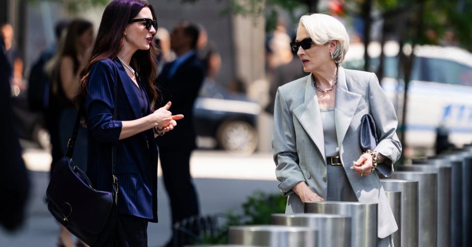 Anne Hathaway als Andy op de set van The Devil Wears Prada 2.
