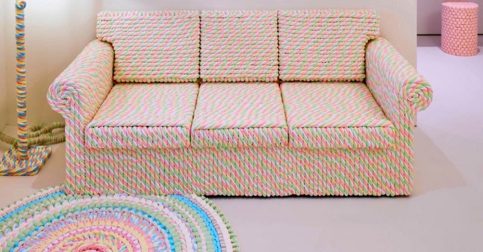 Zeemzoete herinneringen creëer je dezer dagen in Museum Voorlinden, met dank aan de Utrechtse Simone Post. De kunstenaar, die doorgaans met textiel aan de slag gaat en al samenwerkte met merken als Hermès en Adidas, bouwde er haar ouderlijk huis na in… niets anders dan pastelkleurige spekjes, marshmallows en snoepkettingen (maar liefst 700 kilo!). Dat ziet er allemaal wel lief en leuk uit, maar het zet ook aan het denken over zaken als overvloed, gulzigheid en perfectie.