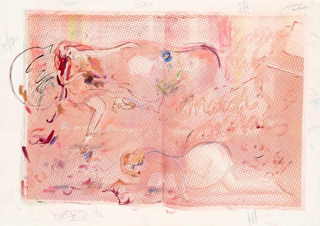 Kunst die is gemaakt met wat je doorgaans in je make-upschuif hebt liggen? Dan ben je vast naar het werk van Belgisch hedendaags kunstenaar Natasja Mabesoone aan het kijken. Onder de noemer It girls exposeert ze solo bij Sofie Van de Velde Gallery in Antwerpen, waar ze thema’s als tastzin, (pop)cultuur en vrouwelijkheid verkent in de vorm van tekeningen, monoprints, etsen en zeefdrukken. Blush, lipstick, highlighter of foundation fungeren voor Mabesoone als potlood of penseel.