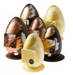 – Ook Pierre Marcolini heeft een uitgebreide paascollectie uitgebracht. Onze favoriet: het klassieke paasei, maar dan wél in een nieuw kleedje. De chocolade kreeg enkele kwaststrepen en lijkt zo een echt kunstwerk. Het ei wordt geleverd met enkele kleinere eitjes en is beschikbaar in zwarte, witte of melkchocolade.