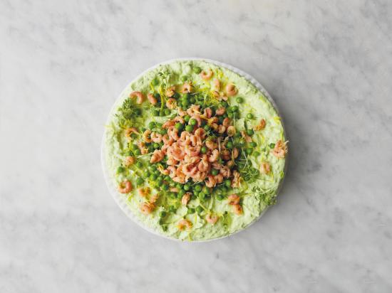 Hartige no-bake cheesecake met grijze garnalen