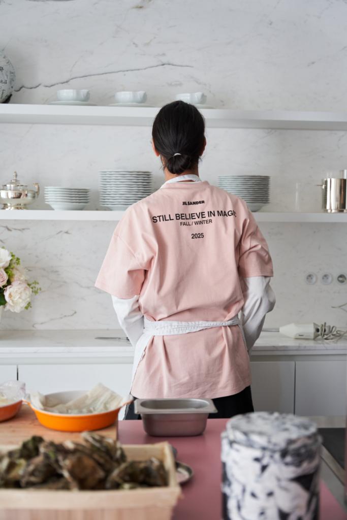 Ik kan me tijdens de week uren verliezen in het samenstellen van de perfecte playlist, want ook de juiste muziek bepaalt de avond. Muziek voert me terug naar bepaalde momenten in mijn leven, die herinneringen heb ik nodig als ik kook. Ook mode, kunst en design houden me bezig: ik maakte bijvoorbeeld een collectie sjaals met Marianne Minten en ontwierp onlangs nog mijn eerste meubel: een poef met marmer en fluffy roze stof.”