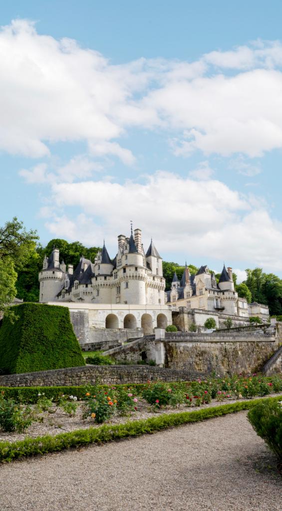 Uitgeproefd en beladen met enkele bijzondere flessen verlaten we in onze huurauto Tours, de stad waar twee eeuwen lang de troon van de Franse koningen stond. Het is de toegangspoort tot de koninklijke kastelen langs de rivier. In hun spoor rijden we stroomafwaarts. Dat je hier omringd bent door geschiedenis, maakt de prachtige landschappen extra boeiend. In Villandry bezoeken we ons eerste kasteel, aan een zijrivier van de Loire. “Dit is het jongste van alle koninklijke kastelen in de Loirevallei en dateert uit de renaissance”, vertelt de audiogids. “In de achttiende eeuw is het grondig gerestaureerd door een rijke burgerfamilie die het kocht, en hun achterkleinzoon beheert nu het domein en zijn beroemde tuinen.” Het geheel van torentjes en uitgestrekte, gemanicuurde tuinen is betoverend. Onze wandeling op de paden tussen de in geometrische figuren geknipte hagen ontaardt al snel in een eindeloze fotosessie. Elk hoekje is anders, en toch zijn ze allemaal perfect. Je kunt er zelfs in verdwalen of je erin verstoppen. Maar het allermooiste zicht op de tuinen heb je van bovenaf: langs de zijkant wandel je over een stenen promenade naar omhoog en zo overschouw je het domein als een echte kasteeldame.