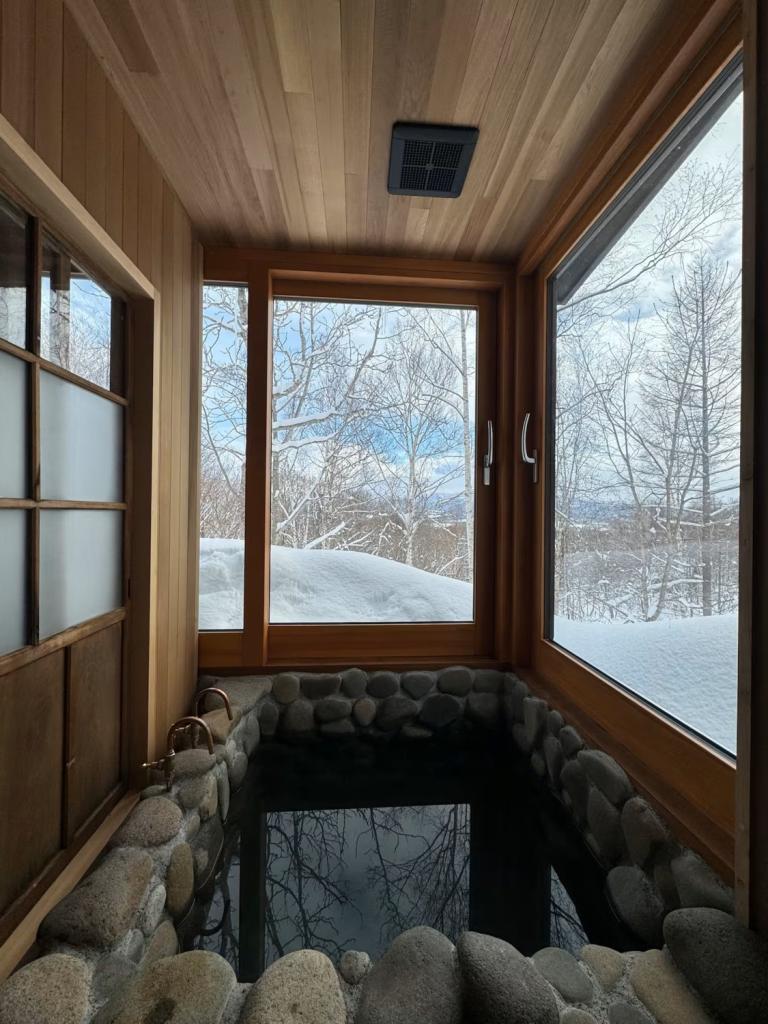 Het paradepaardje – de privé-onsen, een met rivierstenen en houten details handgemaakt bad waarin water van een nabijgelegen warmwaterbron opborrelt, is de letterlijk de blikvanger van het verblijf. Via glazen schuiframen is de onsen rechtstreeks verbonden met bos, waardoor je vrij letterlijk kunt baden in de natuur. Meer rustiger en meer ontspannende kerst ga je niet vinden.