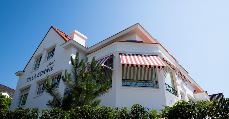Een elegante hotelvilla, dat is Villa Bonnie. Te vinden in Duinbergen, de rustige residentiële wijk aan het strand van Knokke-Heist, en goed voor slechts veertien kamers. Luxe op maat en dat op 400 meter van het strand. Deze charmante kustvilla dateert uit 1955, werd vorig jaar compleet gerenoveerd en kreeg daarbij wat extra Italiaans-Franse allures en oldskool rivièra-vibes.