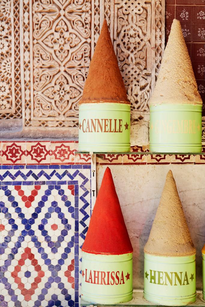 Verderop in het doolhof van straatjes in de medina ontmoeten we traditionele wevers, ververs en leerbewerkers. Ik heb meestal een goed richtingsgevoel, maar nu moet ik er niet aan denken dat ik mijn gids kwijtraak. Salah kent de stad op zijn duimpje en weet de beste uitzichten te vinden, zoals een verborgen terras met uitkijk op de Place des Épices. Wat een prachtig gezicht alweer: tussen de rode muren van het plein huist een charmante markt, een schouwspel vol rieten manden en kleurrijke parasols. Als toerist in de okerkleurige stad moet je zeker vanuit de hoogte de stad eens overschouwen, vind ik.