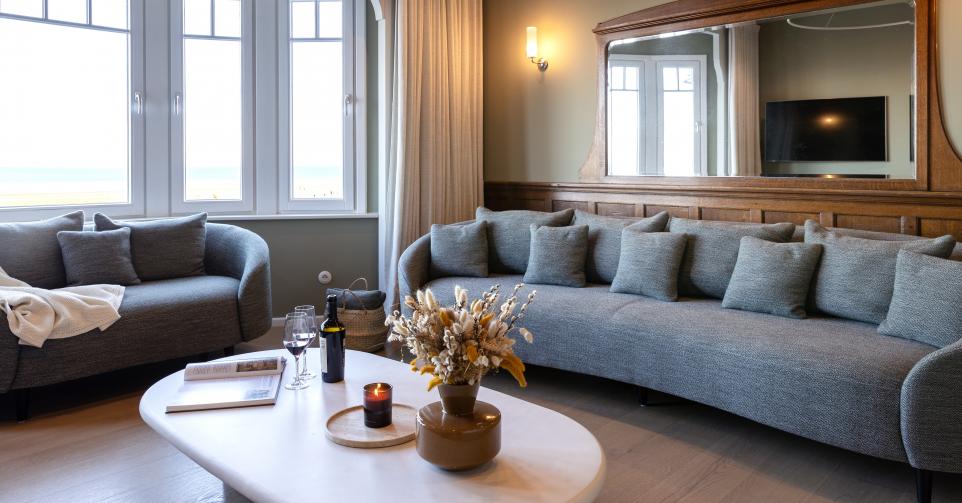 Opgetrokken net voor WOI, achteraf heropgebouwd en vorig jaar gerenoveerd als luxe vakantiewoning voor twaalf met eigen privéterras pal op de Zeedijk. Zowel de gelijkvloerse leefruimte als het elegante salon op het eerste en de kamers vooraan pakken uit met zeezicht. ’s Zomers geniet je van de strandcabine, ’s winters warm je op in de sauna. Met parking!