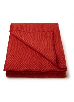 Plaid ‘Nova’ van lamswol (Klippan, € 76,50) - Laat de kleur misschien ook een keer terugkomen op de muren. Als een volledige mandarijnrode muur too much is, kan een poster misschien wel?