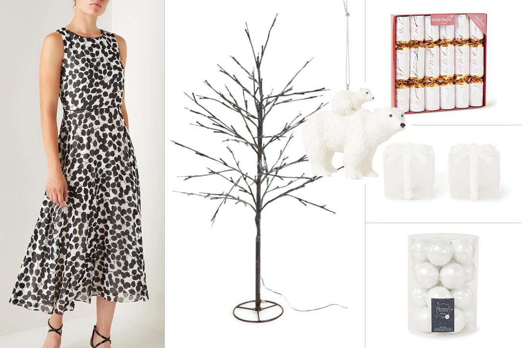 - Zwart-wit jurk met bladprint (Hobbs, € 225)