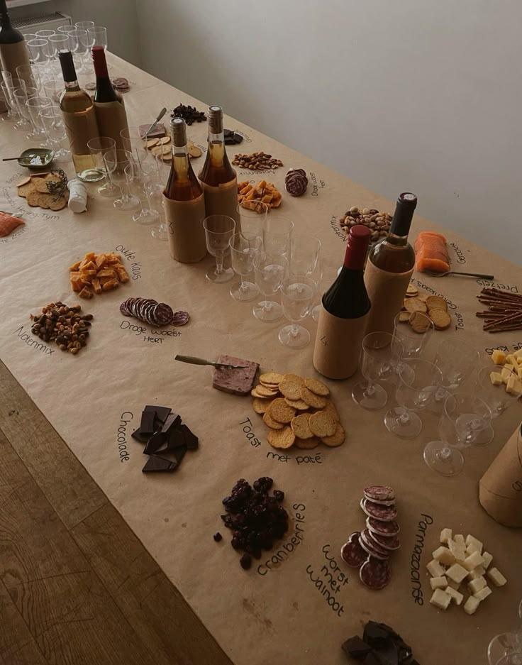 Ook leuk: koop een papieren tafellaken en etaleer daarop alle snacks en schrijf erbij wat het precies is.