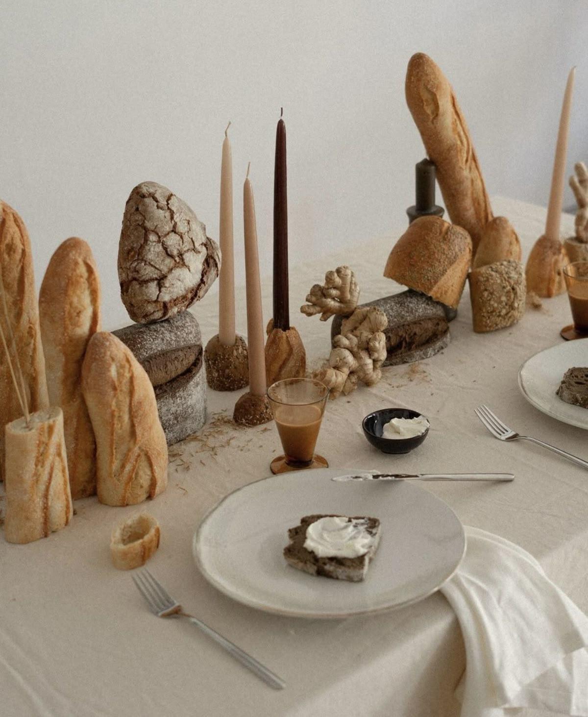 Een bloemetje in het midden van de tafel is leuk, maar het kan creatiever... Wat dacht je van een centerpiece met allemaal verschillende soorten brood? Kijken mag, aanraken én opeten ook!