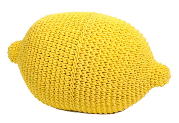 Poef/Kussen, 'Big Fruit citroen', Anne-Claire Petit, 100% organisch gehaakt katoen, 96€, www.bijzondermooi.be