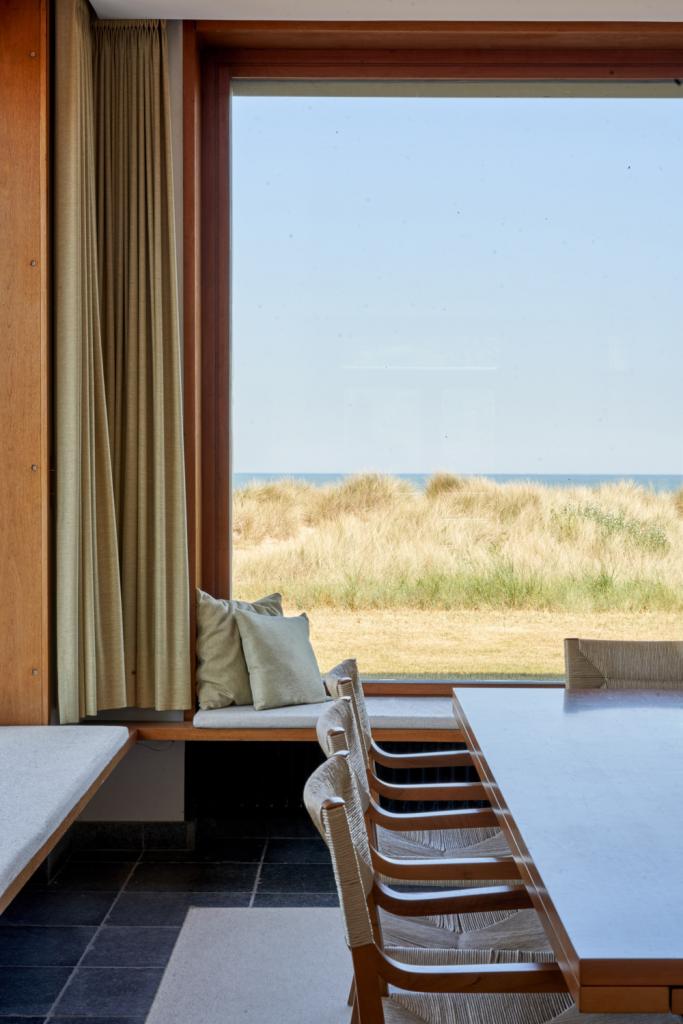 Dat dat tweede verblijf een wel heel unieke architecturale woning was, beseften de zussen niet als jonge meisjes. “Toen we klein waren, was dit buitenbeentje met zijn donkere bakstenen gevel en zijn platte dak vooral een grote speeltuin voor ons. In dit ‘magische duinhuis’ mocht volop geleefd worden. De architectuur en de gekozen materialen zijn inderdaad bijzonder en heel erg mooi, maar tegelijkertijd ook robuust. Alles kan hier tegen een stootje. Tegen de ruige weersomstandigheden van de kust, maar ook tegen de streken die kinderen durven uithalen. Met nog natte zandvoeten binnenlopen, knutselen en timmeren aan de eettafel, eindeloos rondjes draaien in de eenzits, van vers gedraaide ijsjes smullen in de zetel en – misschien nog de beste jeugdherinnering van allemaal – als volleerde brandweermannen van de metalen paal in de trapzaal glijden.” Julie vertelt het alsof het gisteren was.