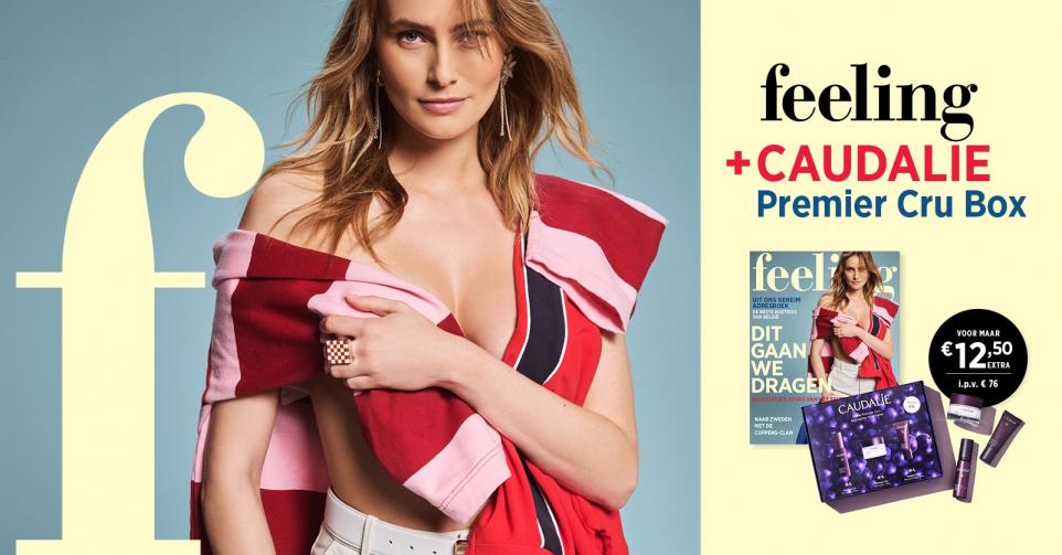 April draait om verwennerij; of dat nu met mode, een geweldig aprilnummer van Feeling of een beauty-verwenmomentje gebeurt, kies je zelf. Voor alledrie opties hebben wij trouwens de oplossing, want bij ons nieuwe nummer scoor je een portie mode én de Premier Cru Box van Caudalie (voor amper € 12,50 extra) inclusief alle anti-ageinghelden van het Franse beautymerk.