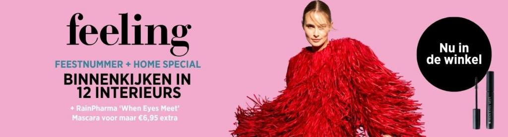 Nu in de winkel: het feestnummer van Feeling + Feeling Home + RainPharma mascara voor amper € 6,95 extra