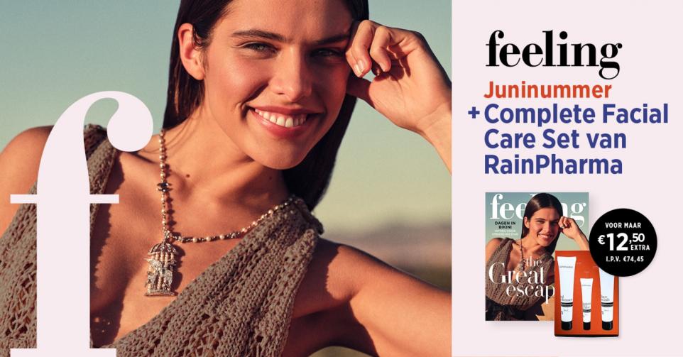 Scoor nu het juninummer van Feeling + Complete Facial Care Set van RainPharma (voor maar € 12,50 extra)