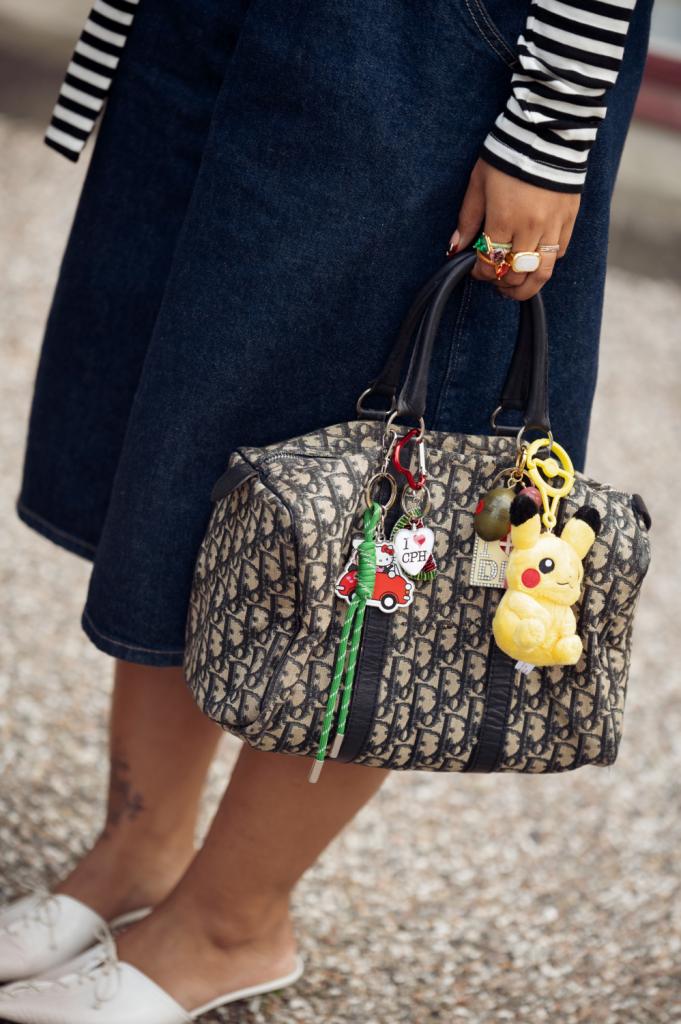 Als we de straten van Kopenhagen mogen geloven, heeft de bag charm-trend ook putje hoogzomer nog geen millimeter aan populariteit ingeboet. Designertassen met een klassieke monogram-print worden door de mode-incrowd nog steeds maar wat graag opgesmukt door vrolijke sleutelhangers, pluchen beertjes of nostalgische tekenfilmfiguren uit anime- of popcultuur.
