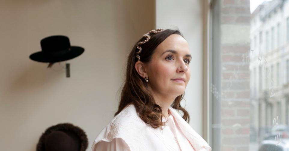 Anne Stoffels (35) is hoedenmaker. Ze leerde het vak in Londen en werkte voor grootmeester Stephen Jones voor ze in oktober 2024 haar eigen atelier in Antwerpen opende.