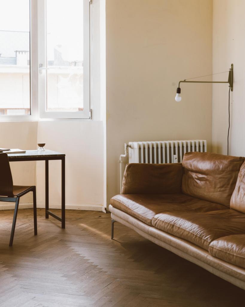 De meubels en objecten die Wijnants wél in huis heeft, hebben stuk voor stuk een speciale betekenis. “De houten zithoek met ontbijttafel in mijn gastenkamer is afkomstig uit een restaurant. Ik vond het stuk bij een antiquair en was meteen verliefd op het eenvoudige en haast kubistische ontwerp. Het lijkt deel van de ruimte zelf. Ook het bureau in de woonkamer is een objet trouvé uit een oude school. Het blad uit natuursteen dat erop ligt, heb ik ooit laten vallen tijdens een verhuis en is nu gebarsten. De imperfectie maakt het eigenlijk nog mooier.” Zo is het ook met mode. “Als student aan de Academie schuimden mijn klasgenoten en ik stockverkopen af van onze grote voorbeelden. Enkele leren stuks van Raf Simons uit die tijd zou ik nooit wegdoen. Ze zijn twintig, dertig jaar oud en nog steeds even mooi. Hetzelfde geldt voor de stukken van Dries Van Noten die ik verzamelde toen ik bij hem aan de slag ging nadat ik was afgestuurd.”