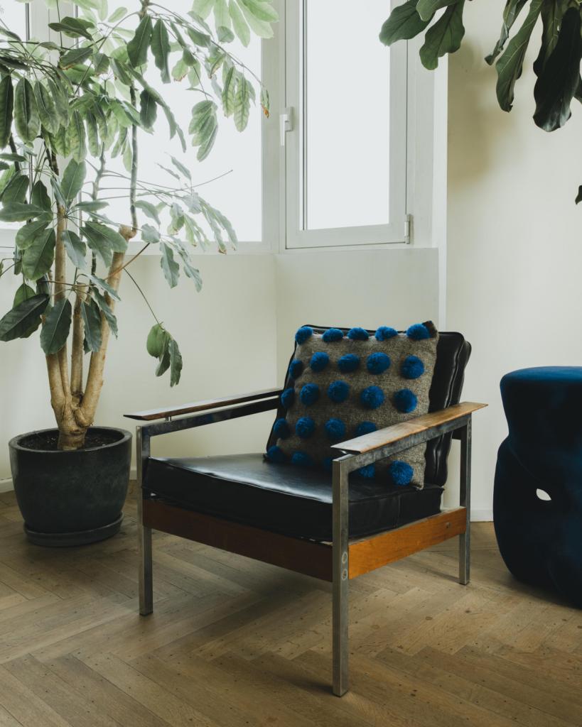 Terwijl dat atelier tot de nok gevuld is met stoffen, tekeningen en moodboards, is het appartement een oase van rust. “Ik heb die rust nodig als ik thuiskom, een reset na de visuele drukte van mijn job. Soms wil ik na een dag ontwerpen simpelweg naar een witte muur staren.” Witte muren vind je hier genoeg. De hele ruimte oogt maagdelijk, op houten designmeubels, enkele kleine schilderwerken en een overdaad aan kunstboeken na. “Kunst heeft altijd een grote rol gespeeld in mijn leven. Mijn grootmoeder was kunstenares. Ze gaf tekenles en schilderde zelf prachtige werken op doek. Ik heb een klein schilderijtje van haar, de rest hangt bij mijn ouders. Mijn collecties putten ook veel inspiratie uit kunst. Daarvoor bezoek ik musea en doorblader ik boeken van artiesten als Marlene Dumas of Peter Doig. Maar ik ben geen kunstverzamelaar. Daarvoor heb ik te veel keuze-stress. Als ik mijn hele leven naar één schilderij moest kijken, dan zou ik het beu worden, vrees ik.”