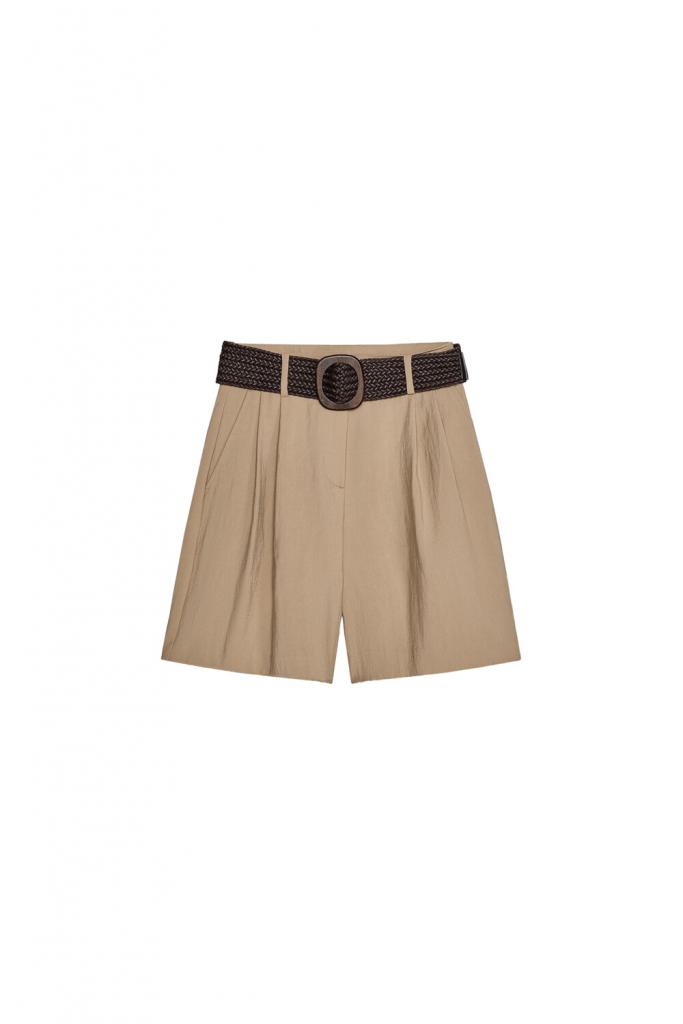 Wijde short met riem (Zara, € 29,95).