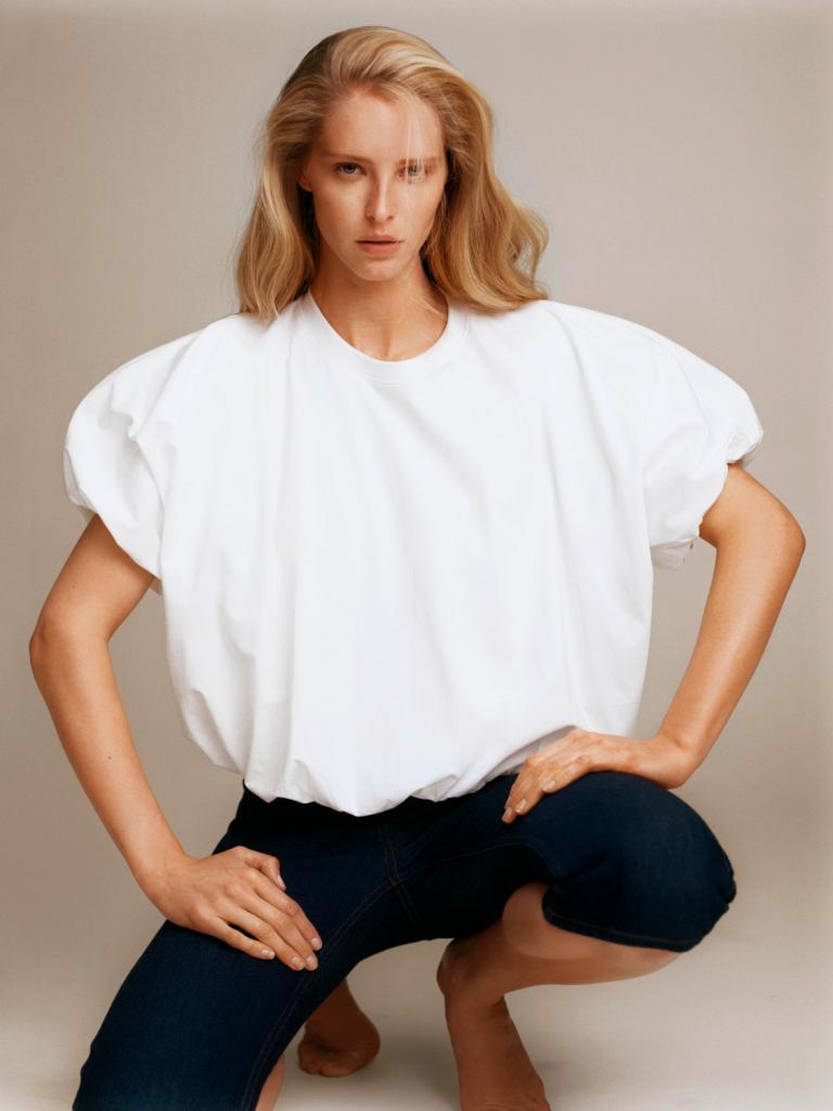 Het énige probleem is dat ik er altijd wel een keer een spaghettivlek op maak. Verder is het witte T-shirt de onklopbare zomerbasic. Geknoopt over je bikini, stijlvol op jeans, minimalistisch met beige en meer wit. Deze, oversized en met volle mouw, draag ik het liefst 24/7.