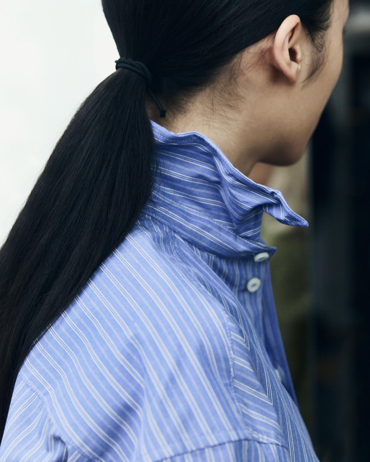 Door de aanpasbare kragen, lengtes en vormen sluipt er een zekere speelsheid — zelfs flirterigheid — in de collectie, die experiment aanmoedigt. Mensen plezier brengen: dat is het doel. “Al gaat het niet alleen om plezier in de zin van ‘haha’,” zegt Martens. “Het draait erom je krachtig te voelen, zelfverzekerd, omdat wat je draagt weerspiegelt wie je wilt zijn. Dat je alle tools krijgt om te bloeien, om je creativiteit, persoonlijkheid en eigenheid te tonen.”