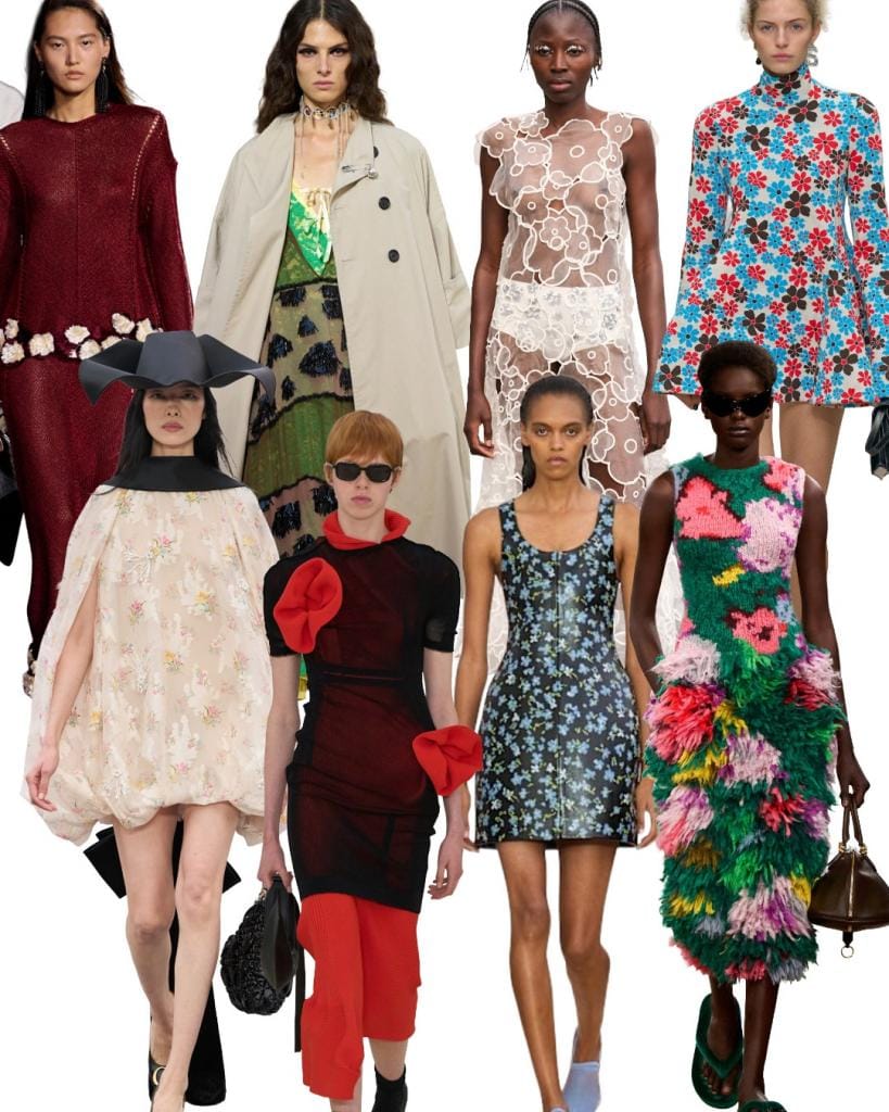 Bloemen in de lente zijn niet baanbrekend, maar in de winter krijgen kleurrijke motieven en bloemenappliqués iets onverwacht chics. Gebloemde prints zijn mooi, maar jurken met verschillende bloementexturen en abstracte interpretaties voelen net wat meer high fashion aan.