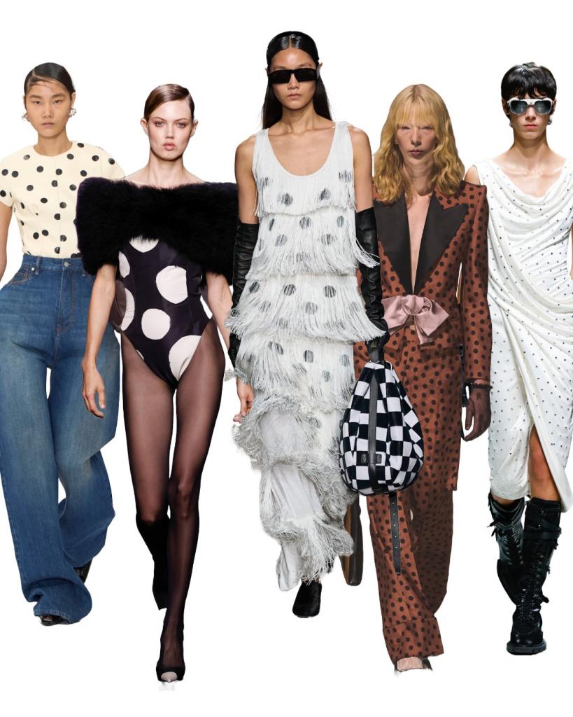 Met stip op één: de polkadot. Klassiek, tijdloos, elegant en oh zo terug van weggeweest. Stoer met jeans, elegant en ‘coquette’ met faux fur, strikjes en franjes. De zwart-witte stippen komen deze zomer trouwens ook in andere tinten: van wit-babyblauw tot zwart-chocoladebruin.