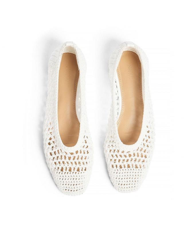 Mesh, raffia, zelfs breiwerk: designhuizen als The Row, Alaïa en Khaite vonden de ballerinaschoen opnieuw uit. And we’re here fot it. De ballerina 2.0 laat je voet ademen door het gebruik van transparante materialen. Een gulden middenweg tussen een klassieke, leren ballerina waarin je (blote) voeten wel eens durven zweten en een casual sandaal die je tenen de nodige ademruimte geven.