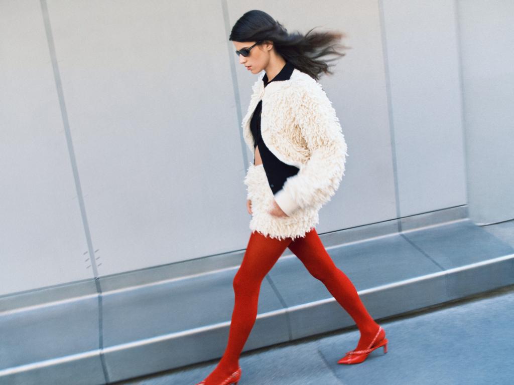 Het rood van kerstrozen, gemixt met de wollige pluizigeid van koude winterdagen: kan Fabienne Chapot in mijn hoofd kijken, of willen álle vrouwen er zo uitzien in januari?