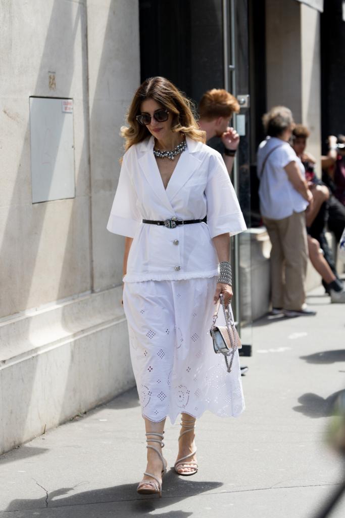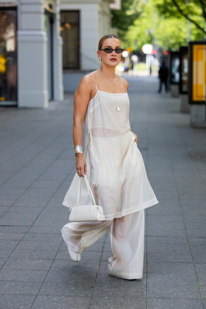 Wat wij dragen wanneer het kwik boven 25 graden stijgt? Een volledig witte look, zoals gezien bij de meest stijlvolle streetstylers.