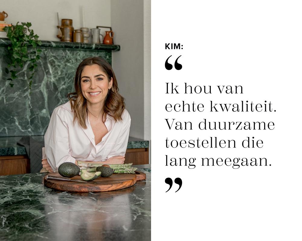 Kim Van Oncen: “Toen we ons huis bouwden, kozen we voor kwaliteit en duurzaamheid, ook in de keuken. Ik wist meteen dat ik toestellen van Miele wilde. Ik heb dat van thuis uit meegekregen, waar alles van Miele lang meeging. Niets is zo vervelend als dingen die snel kapotgaan en vervangen moeten worden, veel gedoe waar je niet op zit te wachten. In élk toestel zitten bovendien innovatieve technologieën verwerkt, die ze nog handiger, efficiënter en duurzamer maken. Denk maar aan de multifunctionele culinaire lade, de combi-stoomoven, de vacuümlade, de XXL-vaatwasser met autodosering of de koelkast met vershoudlade. En ja, ik hou ook van de luxe van een koelkast die meteen ijsblokjes maakt of van een wijnklimaatkast. Samen maken deze toestellen onze keuken echt af, ideaal voor een jong en druk gezin.”