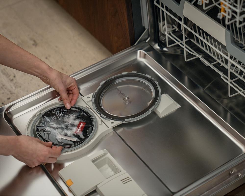 Kim: “Een ruim exemplaar, waar ook grote borden moeiteloos in passen: dat wilde ik graag. We moesten het blad van de keuken wat hoger maken voor deze vaatwasser, maar het loont absoluut de moeite. De PowerDisk doseert automatisch de hoeveelheid afwasmiddel afhankelijk van hoe vuil je vaat is, zodat die perfect schoon uit de vaatwasser komt. Dat is niet alleen handig, maar ook nog eens duurzamer dan al die apart verpakte afwastabletten.”