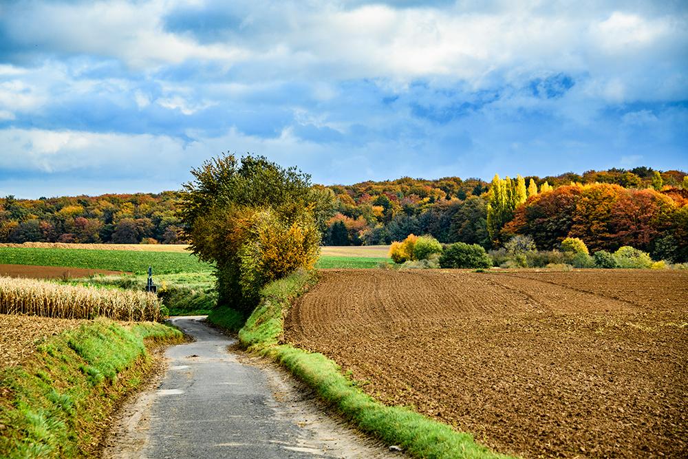 De lange Groeneweg in Overijse maakt zijn naam helemaal waar. Eerst rij je door een smalle corridor van groen, langs chique oude en nieuwe villa’s. Daarna ontvouwt zich een landschap van heerlijk weidse panorama’s over de golvende streek. Hier kun je, naast de velden, akkers en paardenweides, de twee typische druivenserres uit de streek zien. De oudere serres hebben afgeronde hoeken, recente serres herken je aan hun rechtere ‘knik’ – die maakt het mogelijk om makkelijker rechtopstaand te werken.